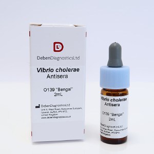 Deben Diagnostics V. cholerae antisera are liquid products that contain a specific agglutinin and are used for the serotyping of V. cholerae O1 and O139. The antisera are prepared by hyper-immunizing healthy rabbits with the reference strains. Antisera are separated, heated at 56°C for 30 minutes, non-specific agglutinins are removed, and then sterilized by filtration.